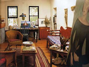 The main studio is housed in the old general store. The walls are sandstock brick and the ceiling is baltic pine with large sky lights. There is a fireplace at one end and shop windows at the other that look out over the landscape and the occasional train that passes not 100 meters away. During the 1930's gold rush the building was a billiard hall and some of the older locals still remember it as a smoky den of ill repute. One locals tells of being led away from it by the ear when he was a child with the warning from the town policeman, "that it wasn't a place fit for children!"